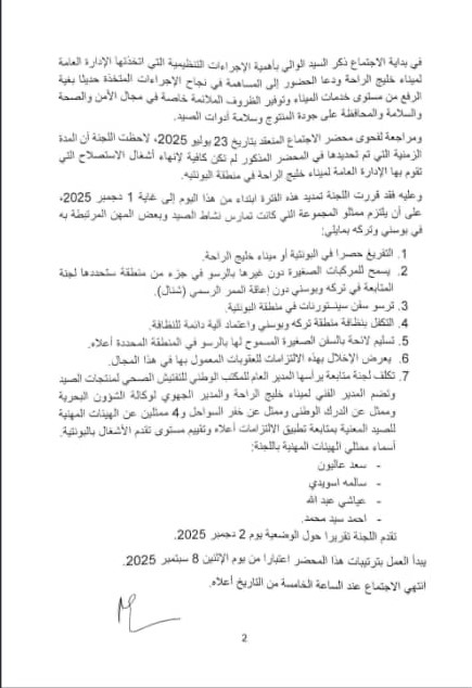 على بعد أيام من حلول الأجل المبرم في الاتفاق بين السلطات المحلية ومرحلي "التركه وبوسني" وميناء خليج الراحة بخصوص منطقة "البونتيه" بتجهيزها لكي تكون مكانا للتفريغ بعد رسالة بحظر التفريغ خارجها حررها المدير السابق للميناء في 9 يوليو 2025.